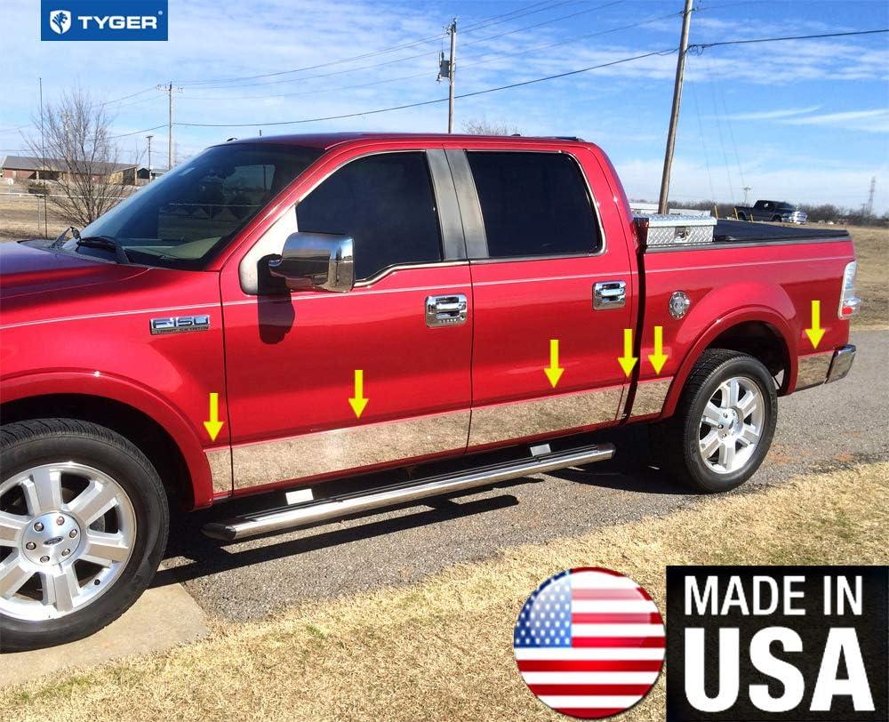imageMade in USA Compatible with 20042008 Ford F150 Crew Cab 55 Short Bed WFender Flare Rocker Panel Chrome Stainless Steel Body Side Moulding Molding Trim Cover 7quot Wide 12PC