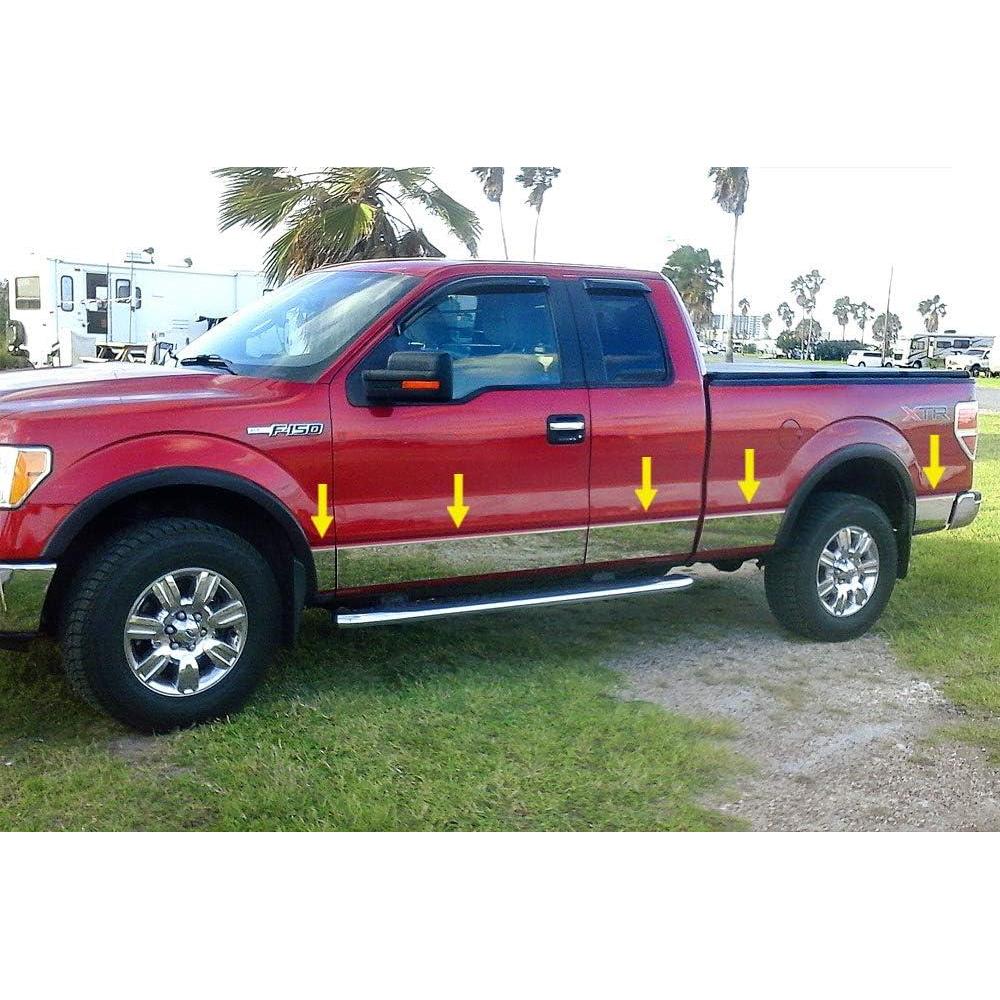 imageMade in USA Compatible with 20092014 Ford F150 Super Cab 65 Bed with Flare Rocker Panel Chrome Stainless Steel Body Side Moulding Molding Trim Cover 7 Wide 10PC
