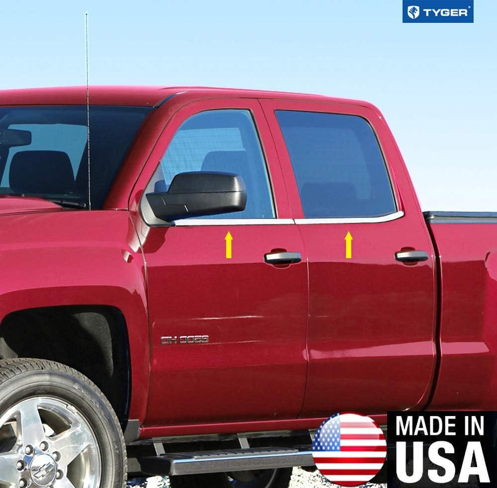imageMade in USA Compatible with 20142018 Chevy Silverado Double Cab 4PC Stainless Steel Chrome Window Sill Trim Overlay