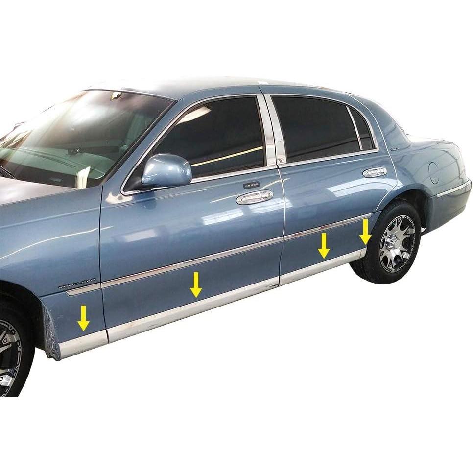 MaxMate Made in USA! Compatible with 1998-2011 Lincoln Town Car Lower Rocker Panel Rocker Panel Chrome Stainless Steel Body Side Moulding Molding Trim Cover 4" Wide 8PC(Lower Rocker Panel Trim)