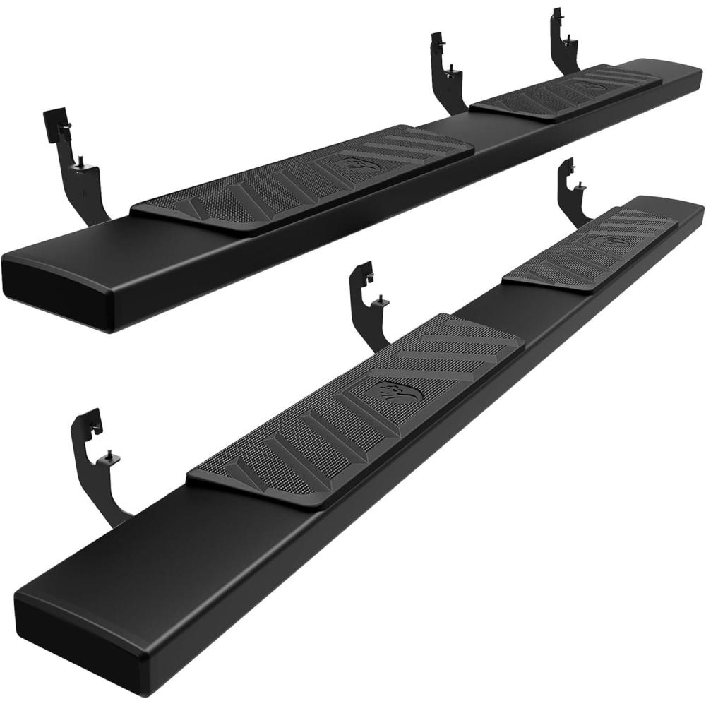 HEAVY-DUTY MATERIAL CONSTRUCTION – Made of heavy-duty triangle aluminum tubing in satin black powder-coating for superior rust resistance and protection to your vehicle. Steps are equipped with UV-resistant non-slip wide step pads to provide you with safe experience getting in and out of the vehicle.