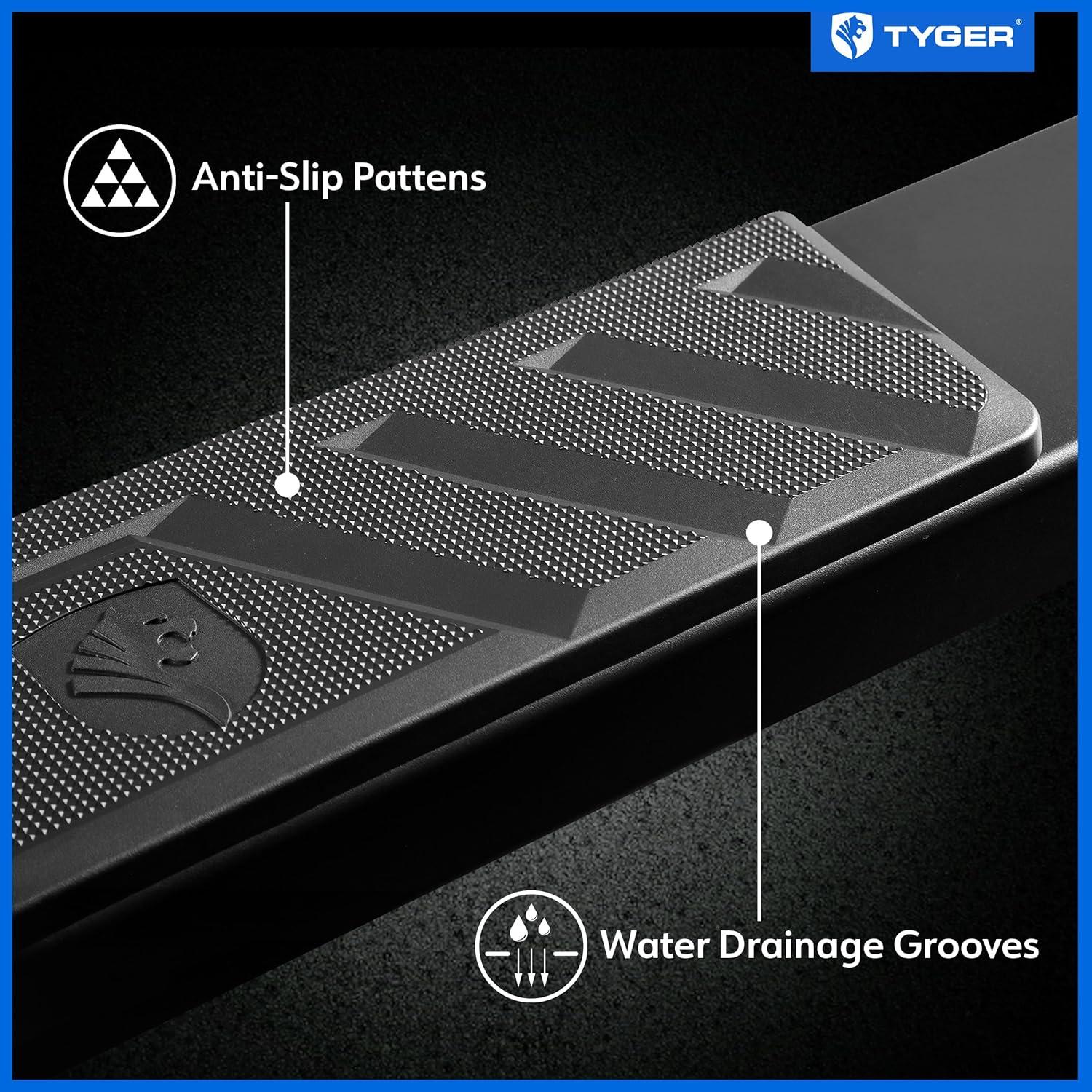 HEAVY-DUTY MATERIAL CONSTRUCTION – Made of heavy-duty triangle aluminum tubing in satin black powder-coating for superior rust resistance and protection to your vehicle. Steps are equipped with UV-resistant non-slip wide step pads to provide you with safe experience getting in and out of the vehicle.