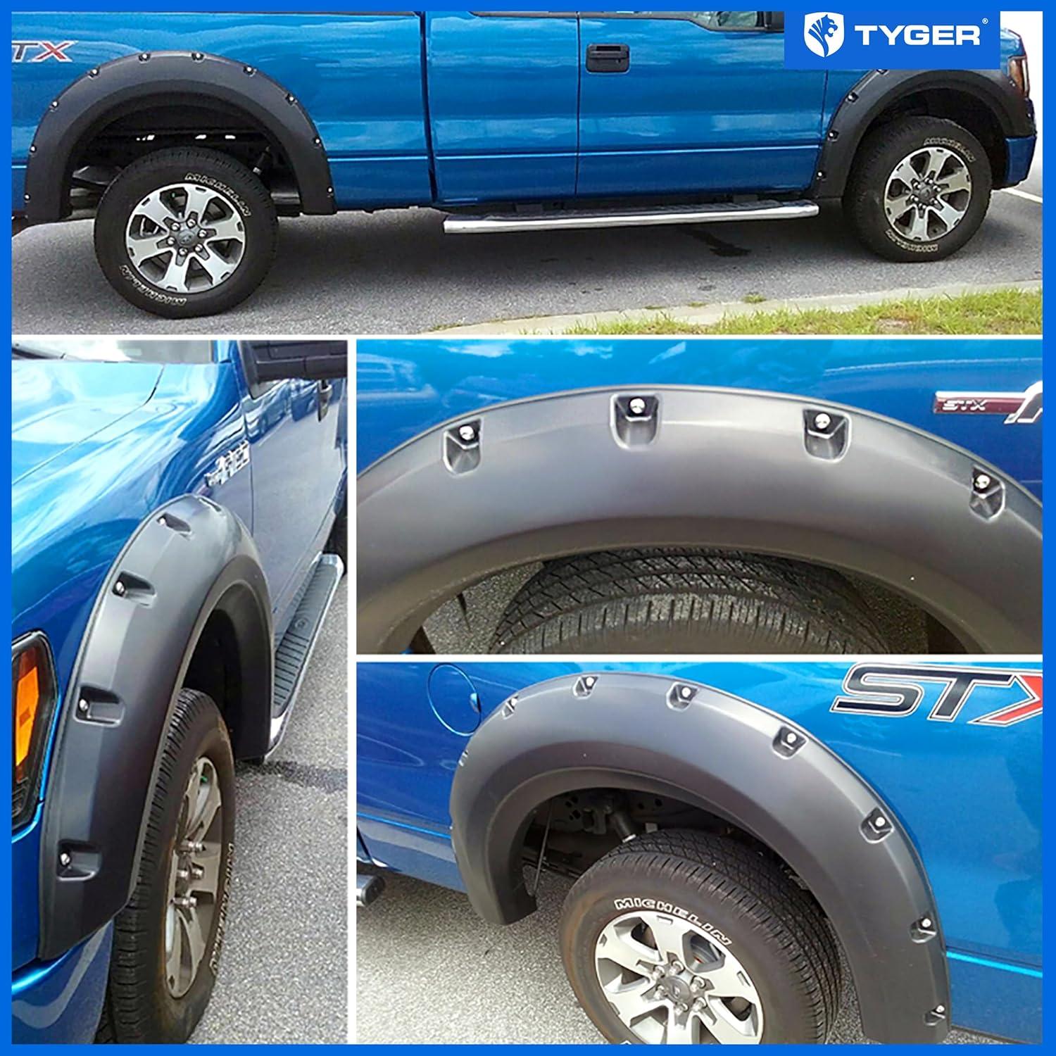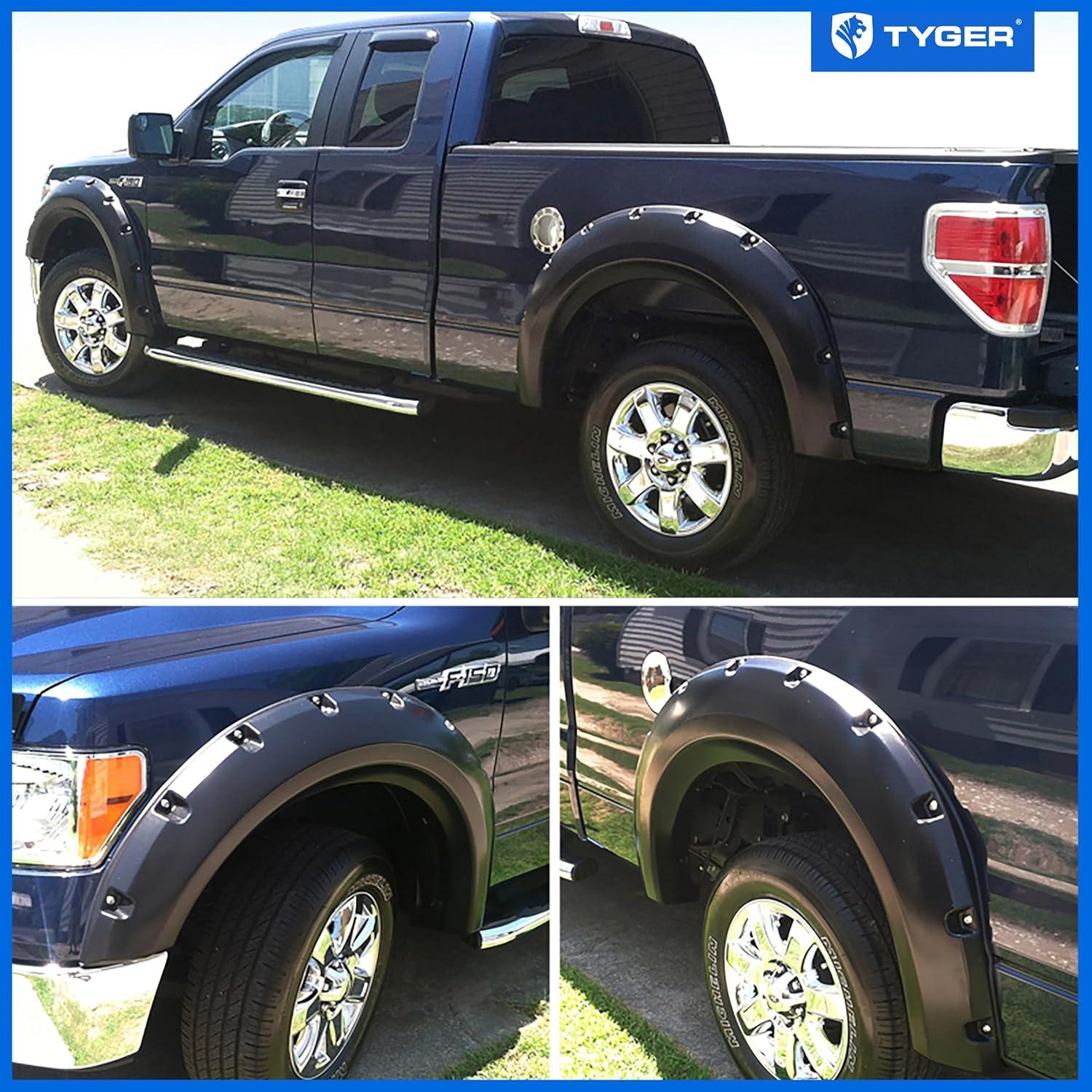 imageTyger Auto Fender Flare Compatible with 20092014 Ford F150 Exclude Raptor Fleetside Smooth Textured Black Paintable BoltRiveted Style 4pc  TGFF8F4028