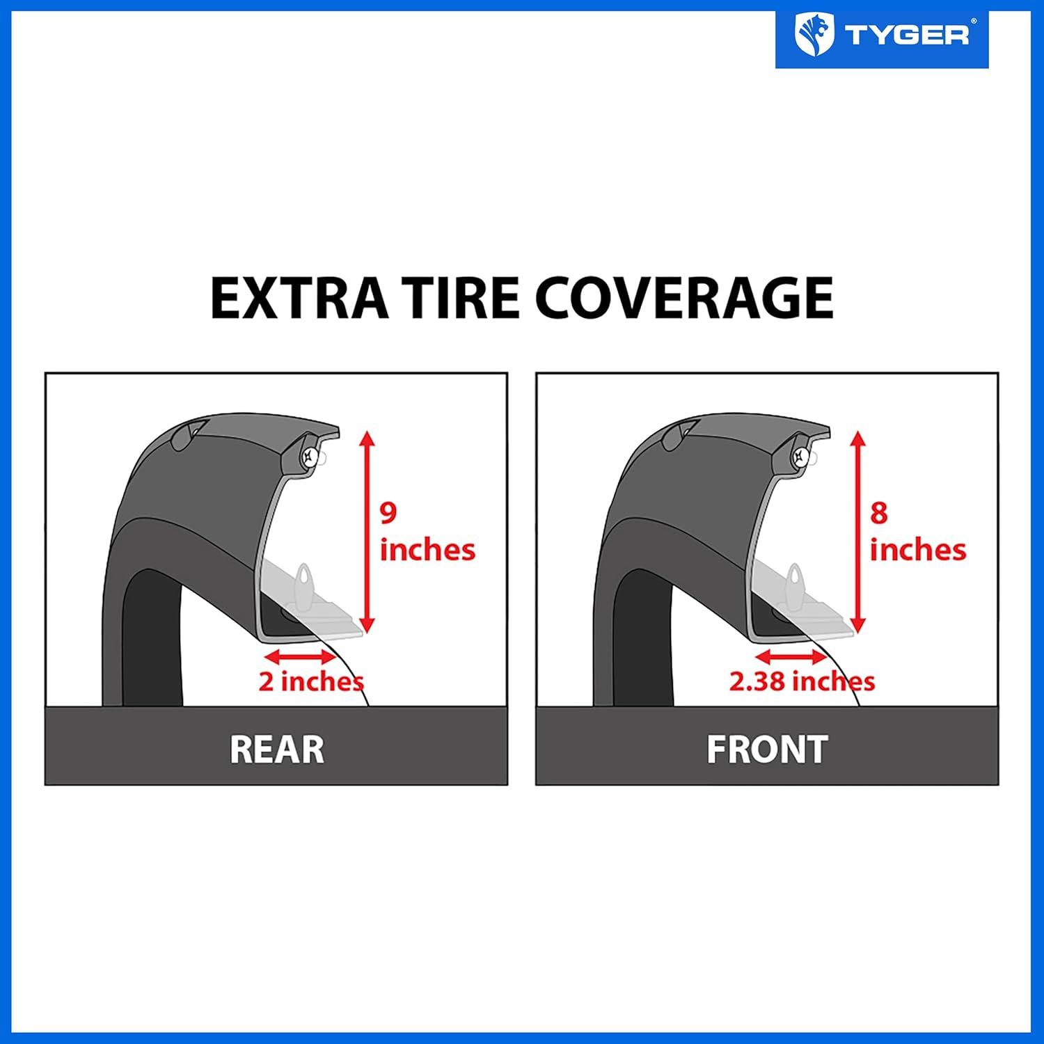 FINISH – 4PC Paintable Smooth Textured 100% UV-resistant fender flares | Flare Height: 8″ in front and 9″ in rear Tire Coverage: 2.4″ in front and 2″ in rear