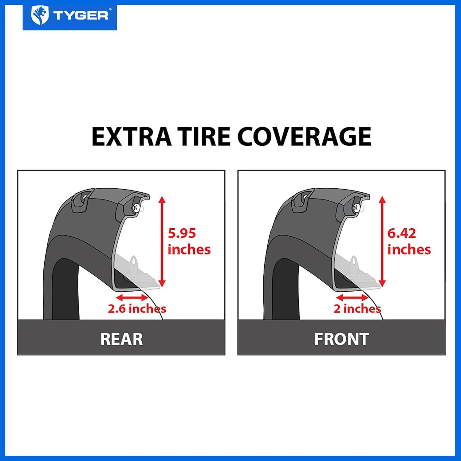 FINISH – 4PC Paintable Smooth Textured 100% UV-resistant fender flares | Flare Height: 6.42″ in Front and 5.95″ in rear Tire Coverage: 2″ in Front and 2.6″ in rear