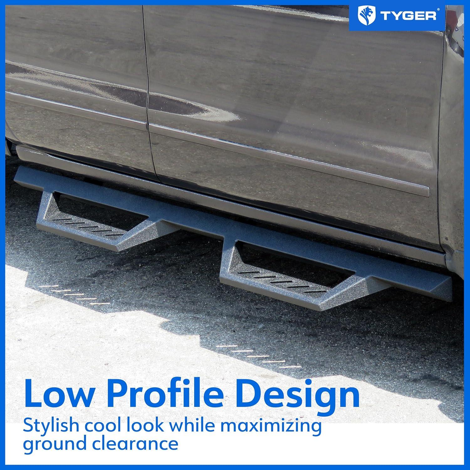 HEAVY-DUTY MATERIAL CONSTRUCTION – Made of heavy-duty carbon steel molded into stylish triangular tube structure. Dual stage E-coating powder textured black finish bolsters these side bars with improved rust and corrosion resistance.