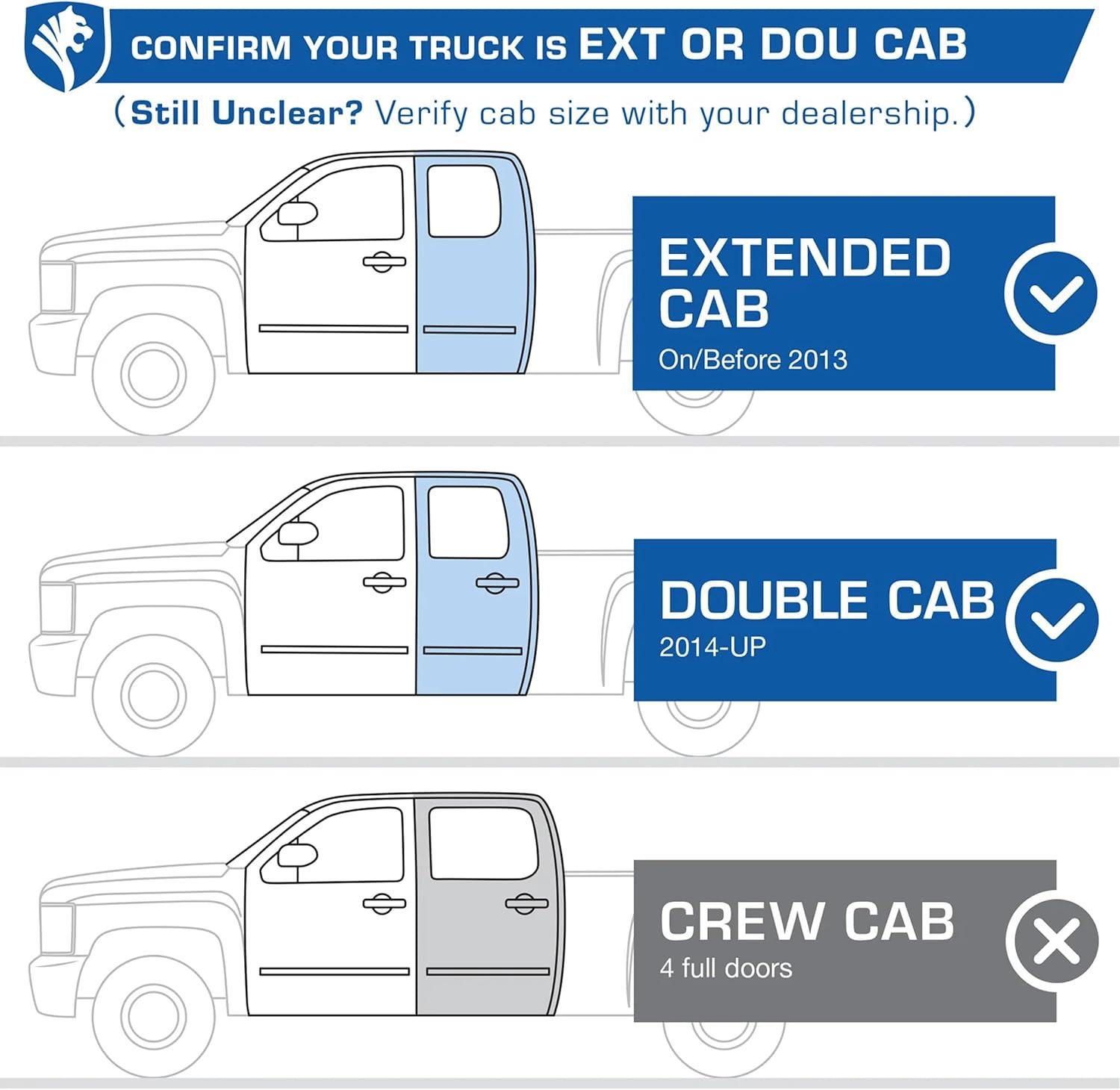 FITMENT – {{ Enter the LICENSE PLATE in the Amazon Confirmed Fit tool at the top of this page to confirm your vehicle fitment with this product. }} Compatible with 2007-2018 Chevy Silverado / GMC Sierra 1500; 2007-2019 Chevy Silverado / GMC Sierra 2500 HD 3500 HD; 2019 Silverado 1500 LD / Sierra 1500 Limited; Diesel models with DEF tanks | Crew Cab [Cab Size Note: Only fit Crew Cab with 4 full-size doors. (See Image for more info)] | Not compatible for Classic Body Style