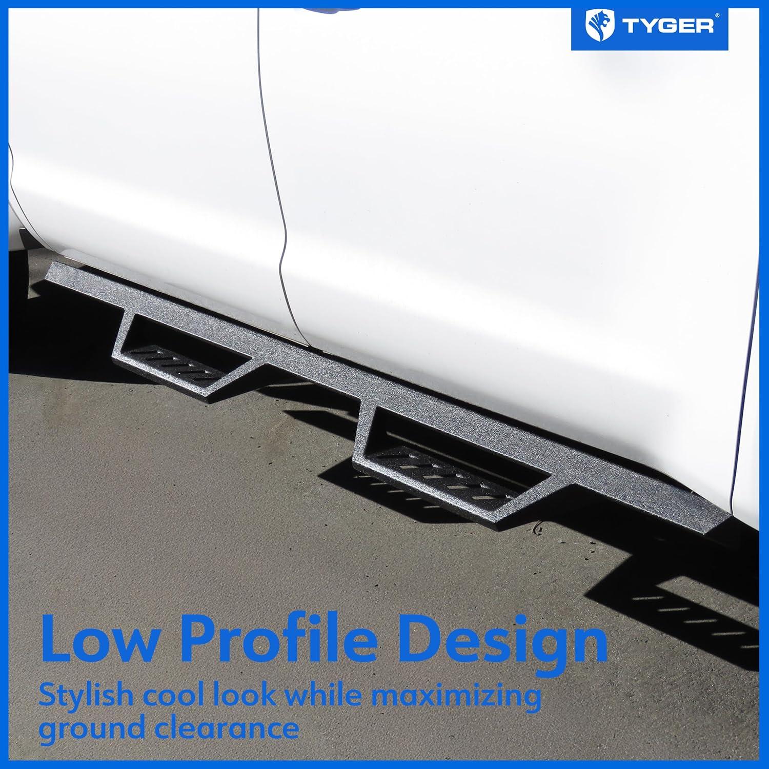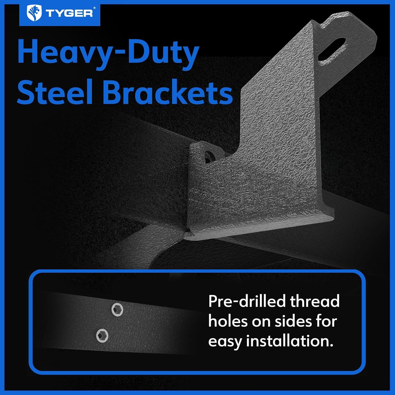 HEAVY-DUTY MATERIAL CONSTRUCTION – Made of heavy-duty carbon steel molded into stylish triangular tube structure. Dual stage E-coating powder textured black finish bolsters these side bars with improved rust and corrosion resistance.