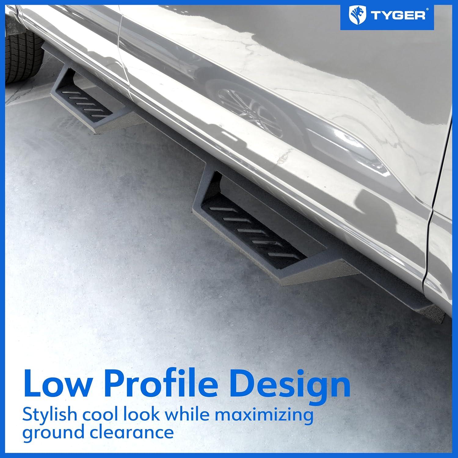 HEAVY-DUTY MATERIAL CONSTRUCTION – Made of heavy-duty carbon steel molded into stylish triangular tube structure. Dual stage E-coating powder textured black finish bolsters these side bars with improved rust and corrosion resistance.