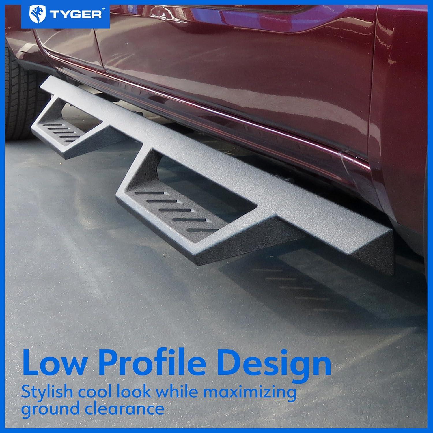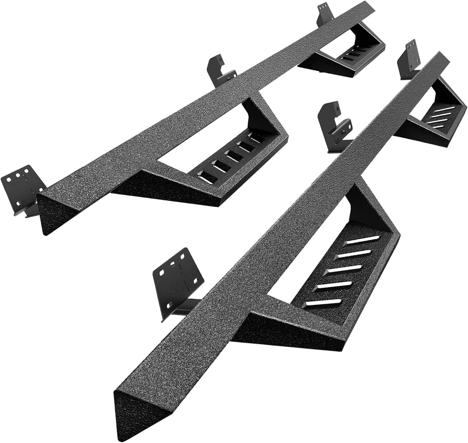 HEAVY-DUTY MATERIAL CONSTRUCTION – Made of heavy-duty carbon steel molded into stylish triangular tube structure. Dual stage E-coating powder textured black finish bolsters these side bars with improved rust and corrosion resistance.