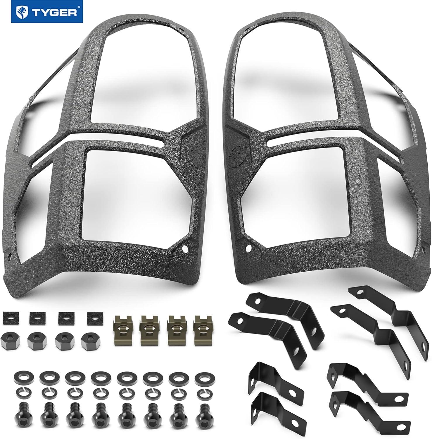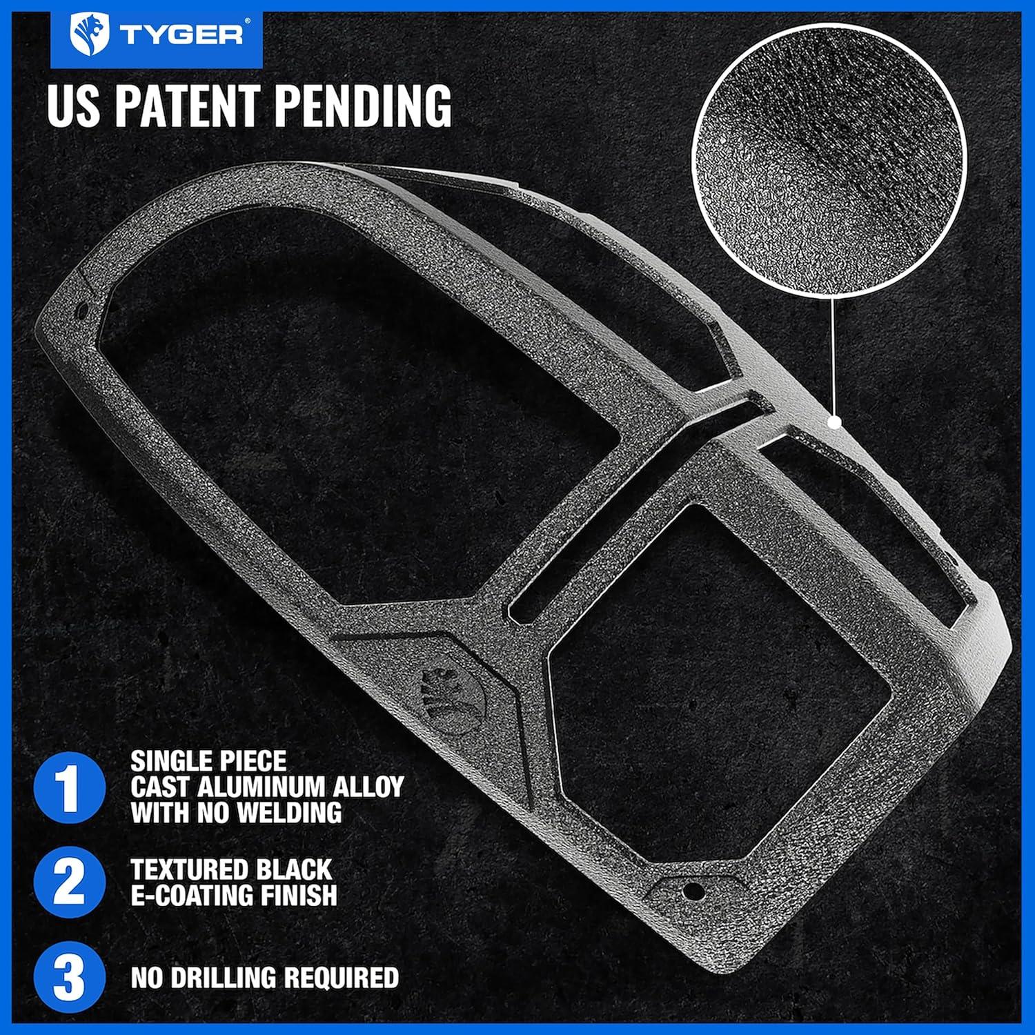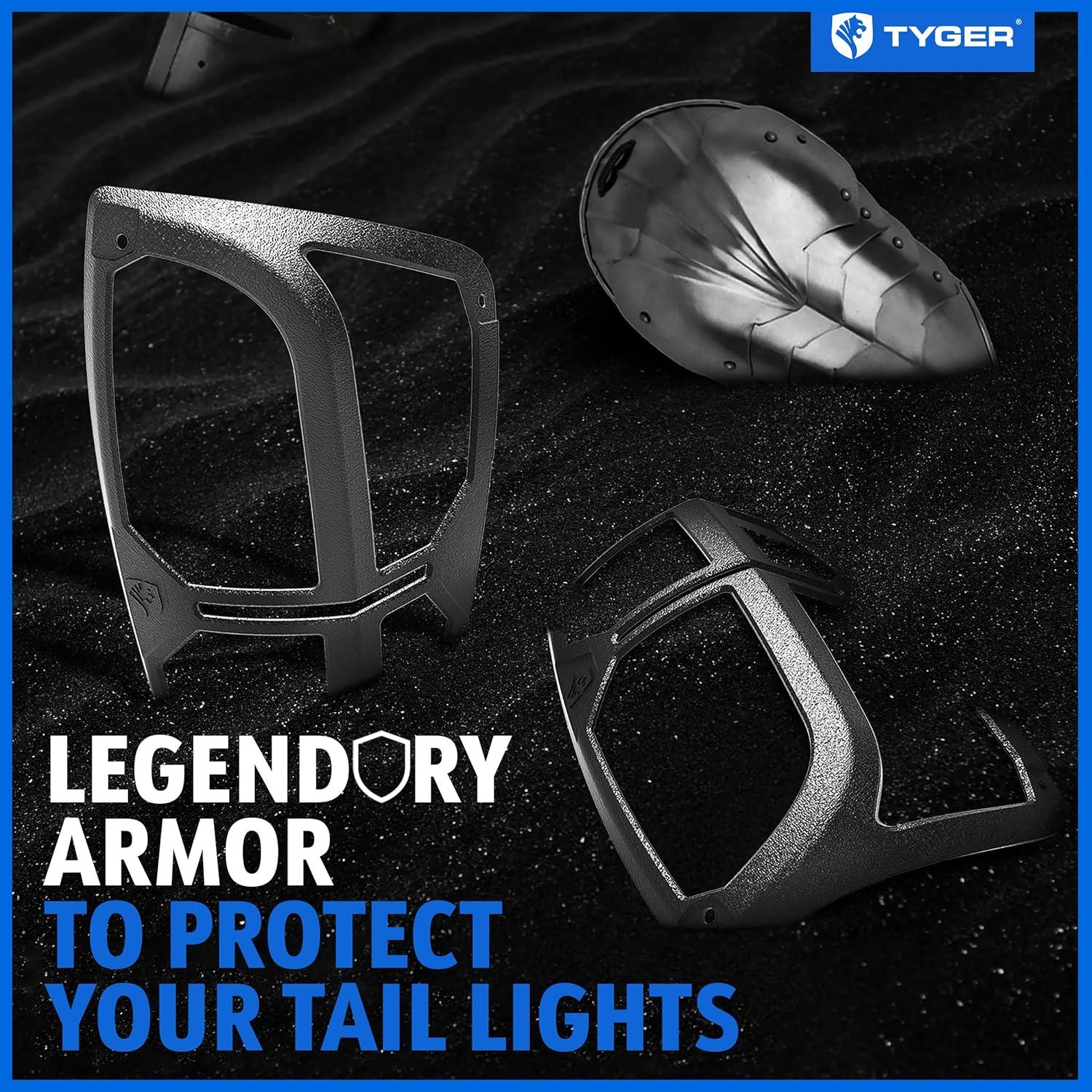 Pauldrons: pieces of plate armor for the shoulder and upper arm. Tyger Auto's Pauldron tail light guards' bespoke design is tailored for owners who want to equip their vehicles with a premium protective look. These tail light covers are molded by a single piece cast aluminum alloy finished with a textured black powdered E-coating yielding the optimal combination of weight, strength, and corrosion resistance. Installation is also made simple, which requires no drilling whatsoever and can be done in minutes.