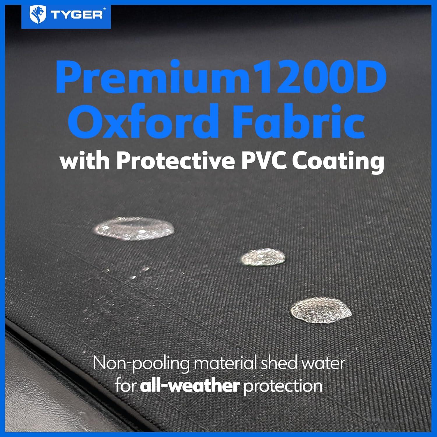 PREMIUM OUTDOOR FABRIC – For truck owners who appreciate rugged gear and outdoor-grade materials, the Tyger Auto T2X Soft Roll-up Tonneau Cover in Fabric delivers both style and performance. Featuring a premium 1200D Oxford fabric tarp with a heavy-duty PVC coating, the T2X offers a high-end, fabric-textured look with true waterproof protection to handle all types of weather conditions. T2X's sleek, low-profile design keeps your truck looking sharp while preserving full use of the bed rail surface and stake pockets for mounting racks, rails, and other truck bed accessories. Velcro strips along the sides create a weather-tight seal, and the tailgate latch system locks the cover securely in place. The integrated tension control system at the rail ends ensures a tight, wrinkle-free fit all year round. Quick-release latches let you roll up the cover easily for full bed access, and installation is fast and drill-free. Like all Tyger Auto covers, the T2X is backed by our limited lifetime warranty and engineered to meet or exceed OE standards for truck owners who demand more from their gear.