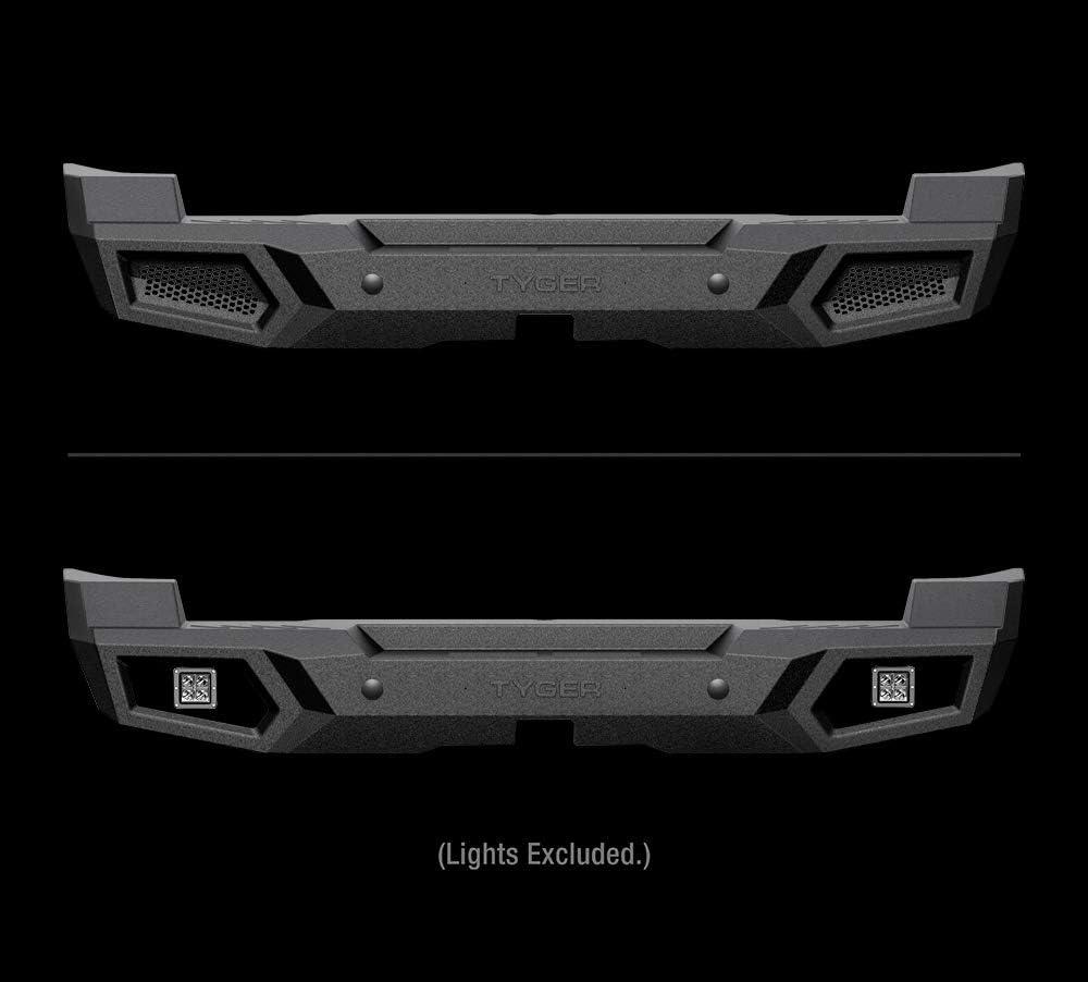 Removable light covers for aftermarket lights and pre-drilled license plate holes for easy customization. Fits up to 3″ side light pods. Comes with predrilled holes for Parking Sensor.