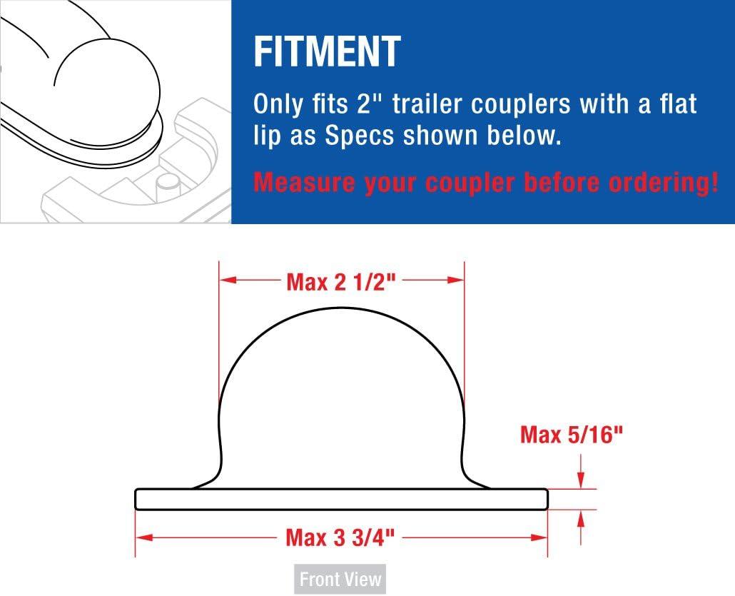 FITMENT NOTE – Only fits 2 inch couplers with a flat lip on the bottom edge of the coupler.