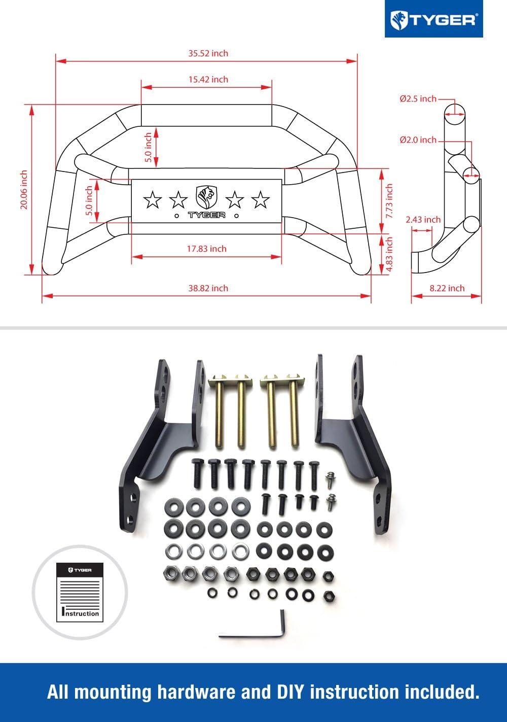 US design patented TYGER Guard ! The kit includes one bumper guard and all mounting hardware and DIY installation manual. | FITMENT – Compatible with 2015-2022 Chevy Colorado / GMC Canyon; Tow hooks need to be removed. For models without tow hooks, minor cutting required. Will interfere with front sensors if equipped.