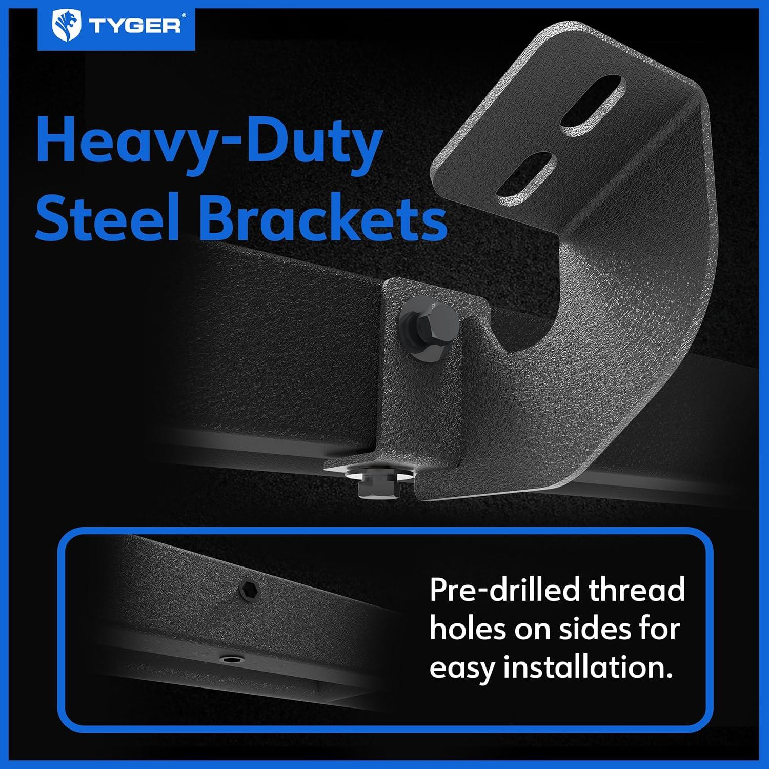 HEAVY-DUTY MATERIAL CONSTRUCTION – Made of heavy-duty 2 inch diameter carbon steel molded into the robust dual-tube structure. Dual stage textured black powder E-coating finish bolsters Tyger Trax with improved rust and corrosion resistance.