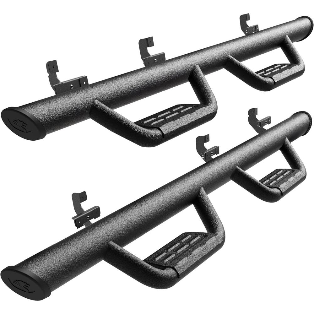 WHAT'S INCLUDED FOR EASY INSTALLATION – Includes both driver and passenger side running boards. | Includes all hardware and brackets required to mount onto the rocker panel. | Easy bolt-on installation. | Installation can easily be done in 20 minutes. | Weight Capacity: 500 lb. | Ground Clearance approximately 11 in.