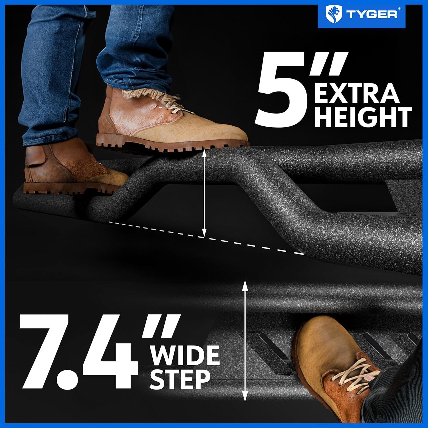 INSPIRED BY THE WILD – Tyger Kobra's stylish drop step design is inspired by the resilience and adaptability from the creatures of the wild. These nerf bars' W-shaped, two-stairs configuration effectively combines the safety of the drop steps with the utility and accessibility from the elevated center-step; resulting in an essential and versatile side step addon that guarantees you and your passengers to slither through all types terrain and environment with ease.